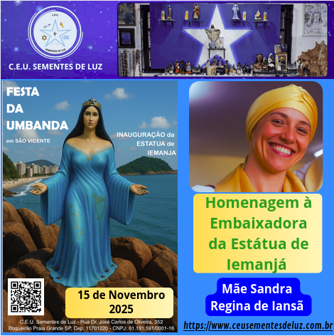 Inauguração da estátua de Iemanjá na 8ª Festa da Umbanda, onde Mãe Sandra Regina de Iansã, Diretora do C.E.U. Sementes de Luz, foi homenageada como Embaixadora da Estátua de Iemanjá.