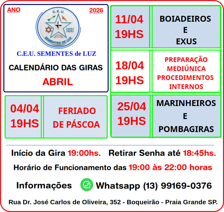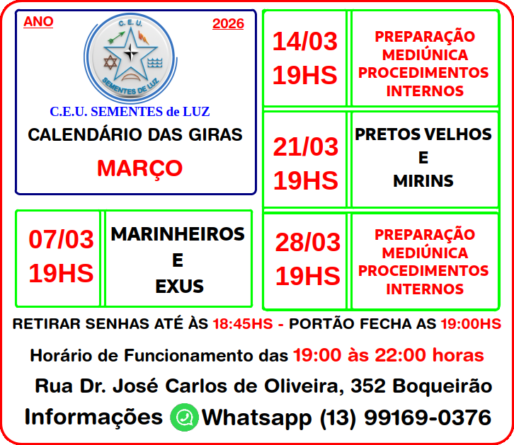 WhatsApp 13 99169-0376 - C.E.U. Sementes de Luz
